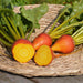 La betterave Touchstone Gold biologique des Jardins de l'Écoumène est une variété à la chair jaune orangée. Les racines présentent une très belle uniformité et la germination des graines est excellente.