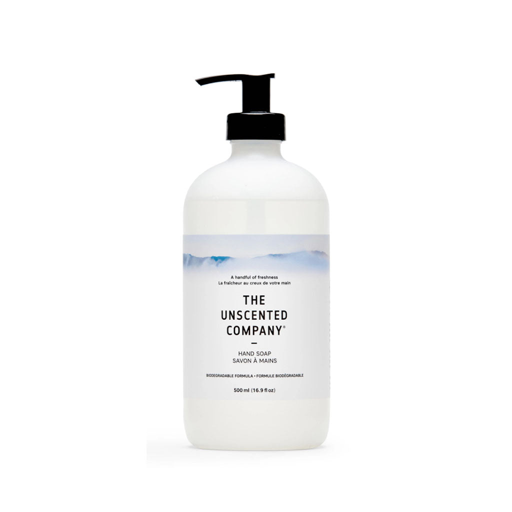 Le savon à mains The Unscented Company est fait avec des ingrédients naturels et respectueux de l'environnement. La formule biodégradable et conçue au Québec ne contient aucun parfum, colorant ni parabène.